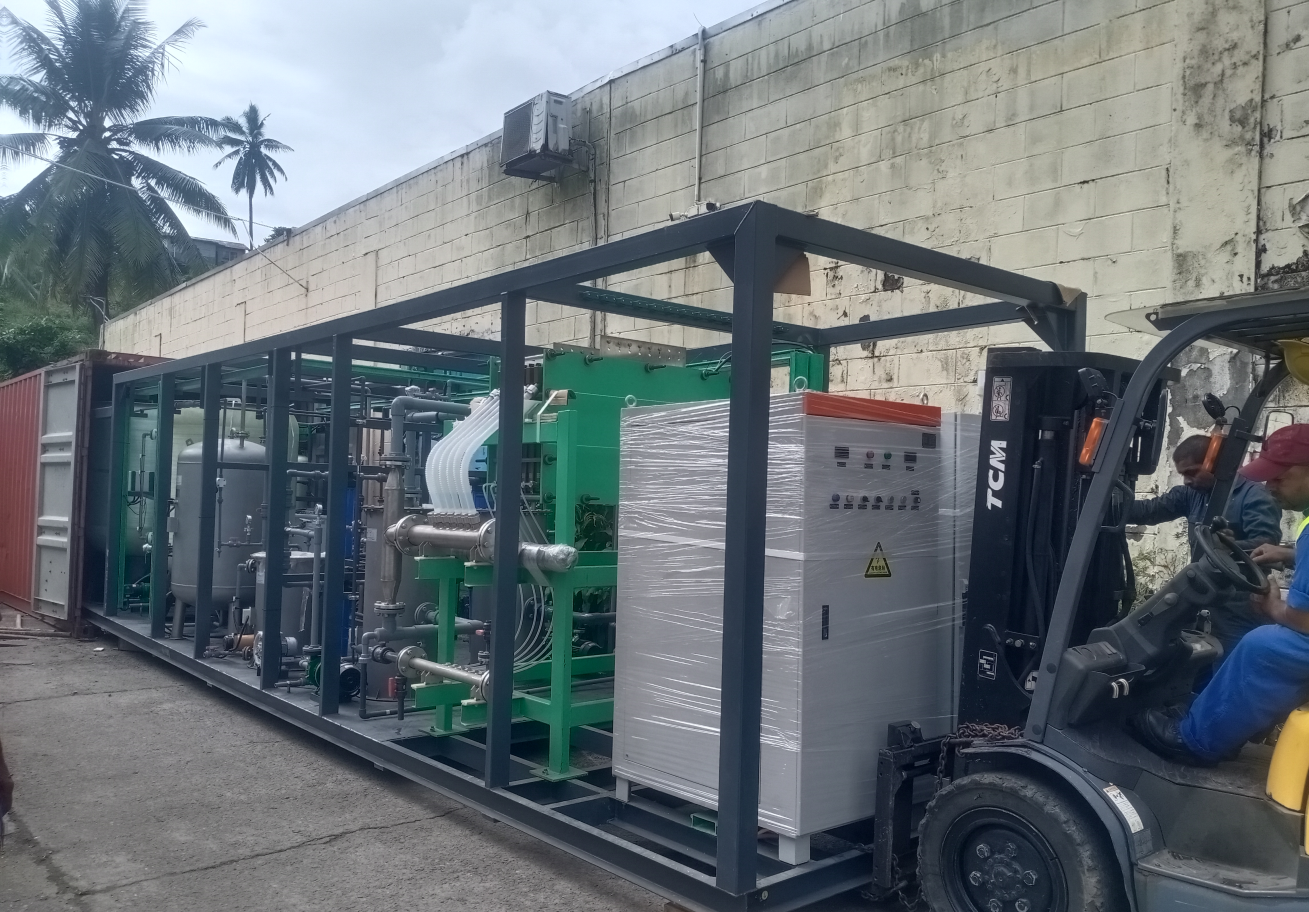 Yantai Jietong new made 10-12% high strength sodium hypochlorite producing machine arrrived at customer site and two engineers also arrived at customer site at the same time.